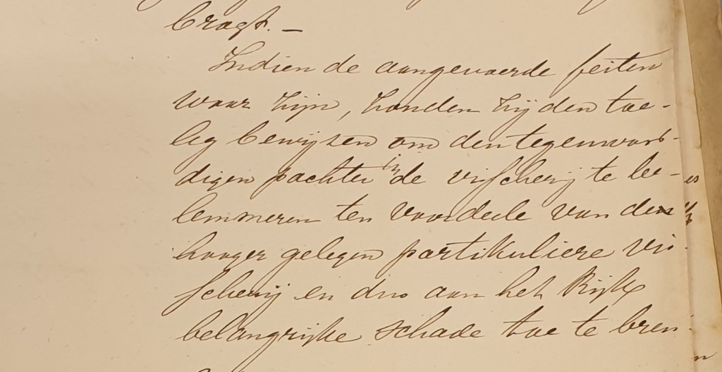 In de stoffige map met handgeschreven stukken in het Nationaal Archief vond ik de sporen van sabotage! De ene visserij belemmerde de andere moedwillig in het vissen door palen in de rivierbodem te slaan. Daardoor beschadigde het kostbare zegennet van de concurrent. Waarschijnlijk zat een voorouder van me achter dit snode plan…